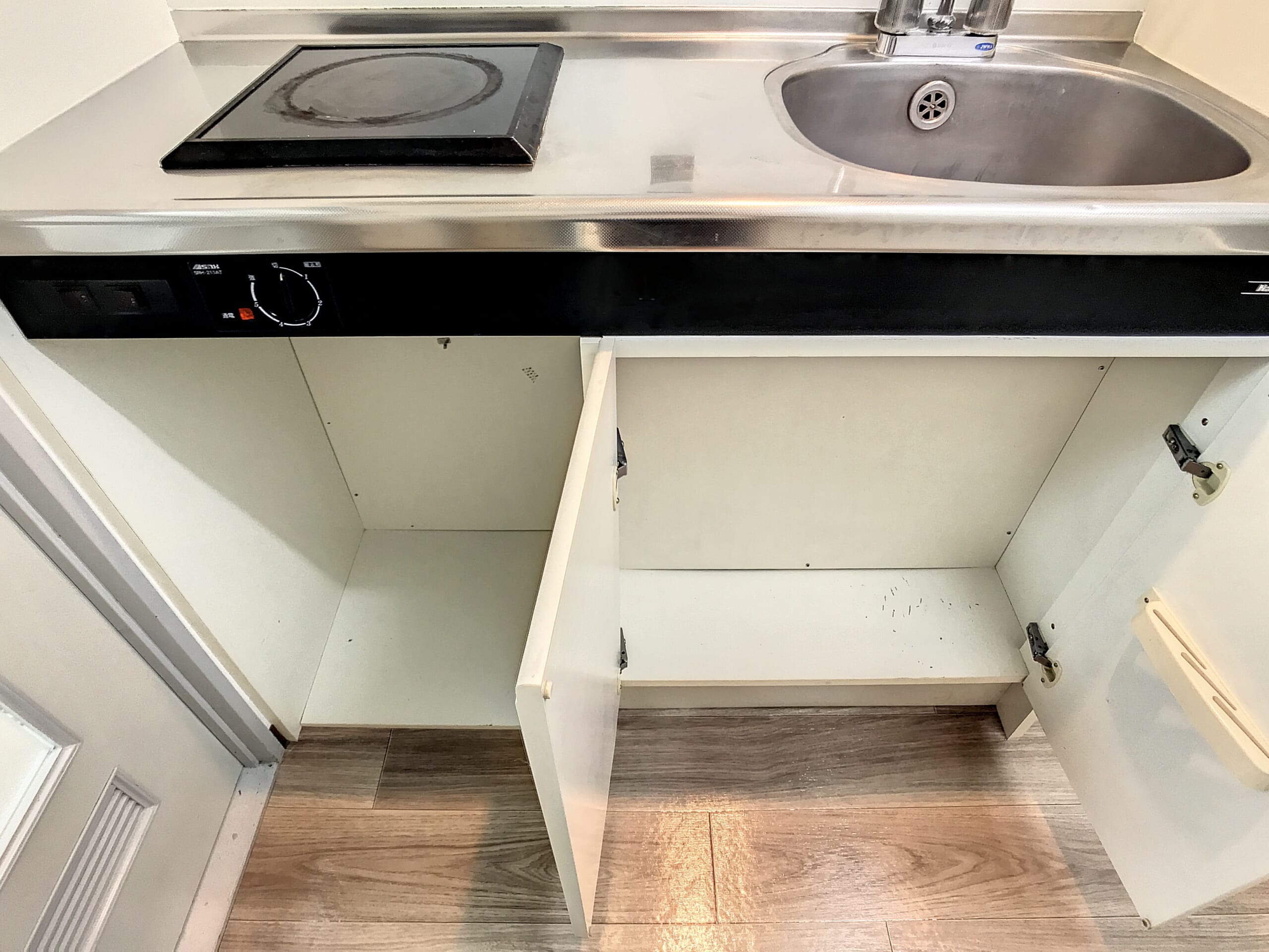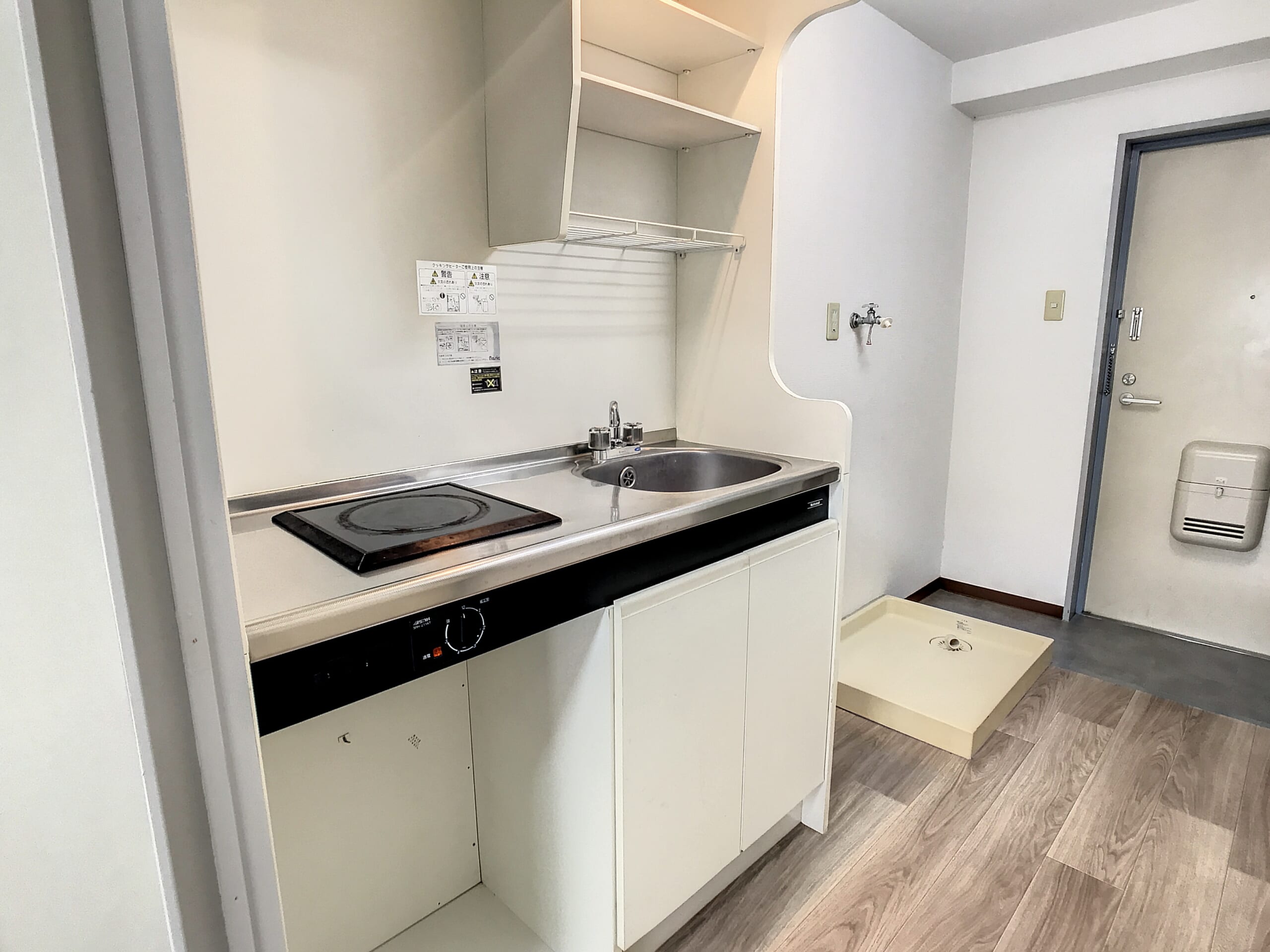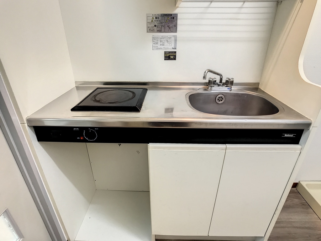 キッチンには1口コンロが備え付けられおり、コンロの購入も不要!
