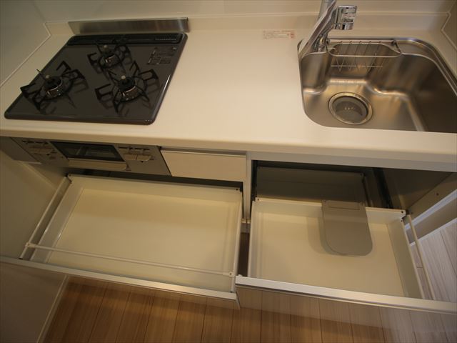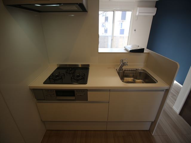キッチンはシステムキッチンになっており、3口のガスコンロが完備されております!
